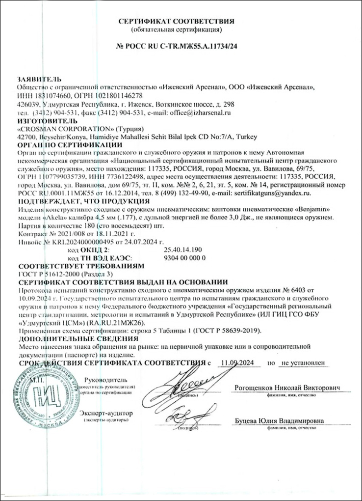 Винтовка пневматическая Crosman Benjamin Akela к.4,5мм орех РСР