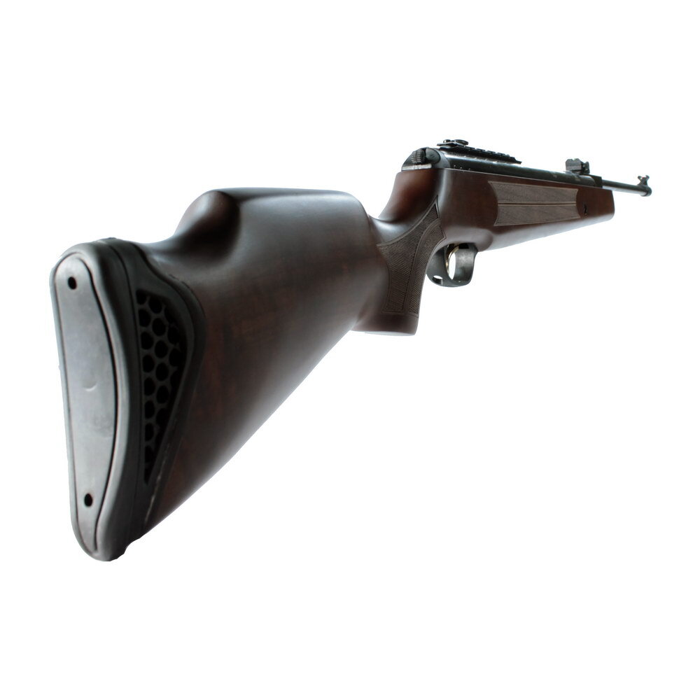 Hatsan 135 - это однозарядная пневматическая винтовка с пружинно-поршневым типом взвода. Материалом для изготовления приклада и ложе традиционно используется древесина турецкого орешника. Ствол представленного оружия имеет продольно расположенные нарезы, которые превосходно выполнены в стальной основе. Приклад оснащен типичной щекой, так называемой «Монте-Карло». Конструктивно предусмотрена и регулировка длинны приклада, ее обеспечивает система TRIOPAD, которая при этом служит еще и гасителем силы отдачи.