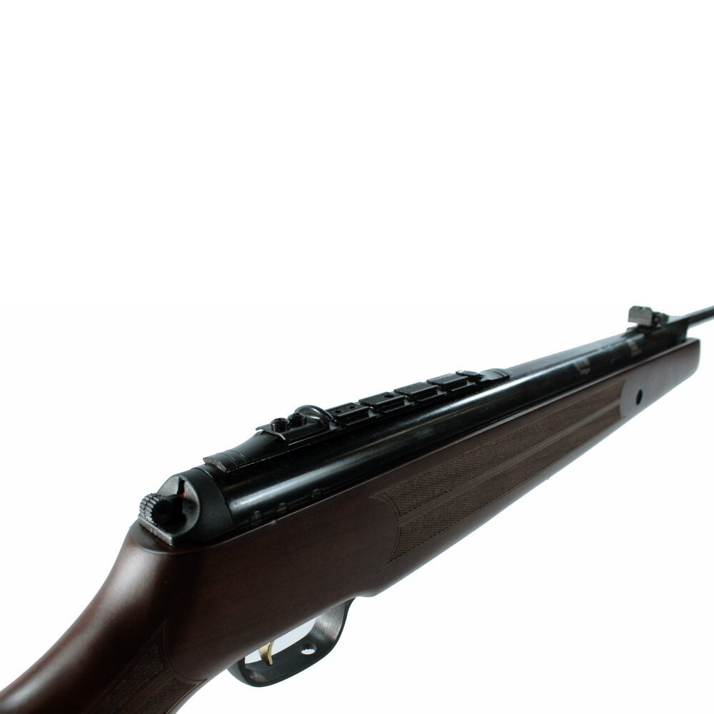 Курок этой модели имеет позолоченную основу, которая прекрасно подчеркивает стильный дизайн при этом спуск еще и довольно функционален с регулировкой силы нажатия. Двойной предохранитель, который также вошел в устройство винтовки обеспечит полную безопасность для владельца, а автоматический защитный механизм непременно поможет избежать самопроизвольного выстрела в случае выключения предохранителя при взведении пружины в боевое положение. Прицельная планка на винтовке Hatsan 135 имеет функцию микрометрической регулировки по горизонтальным и вертикальным осям, что позволяет идеально точно выполнять пристрелку ружья. Мушка открытого типа с оптоволоконным покрытием.