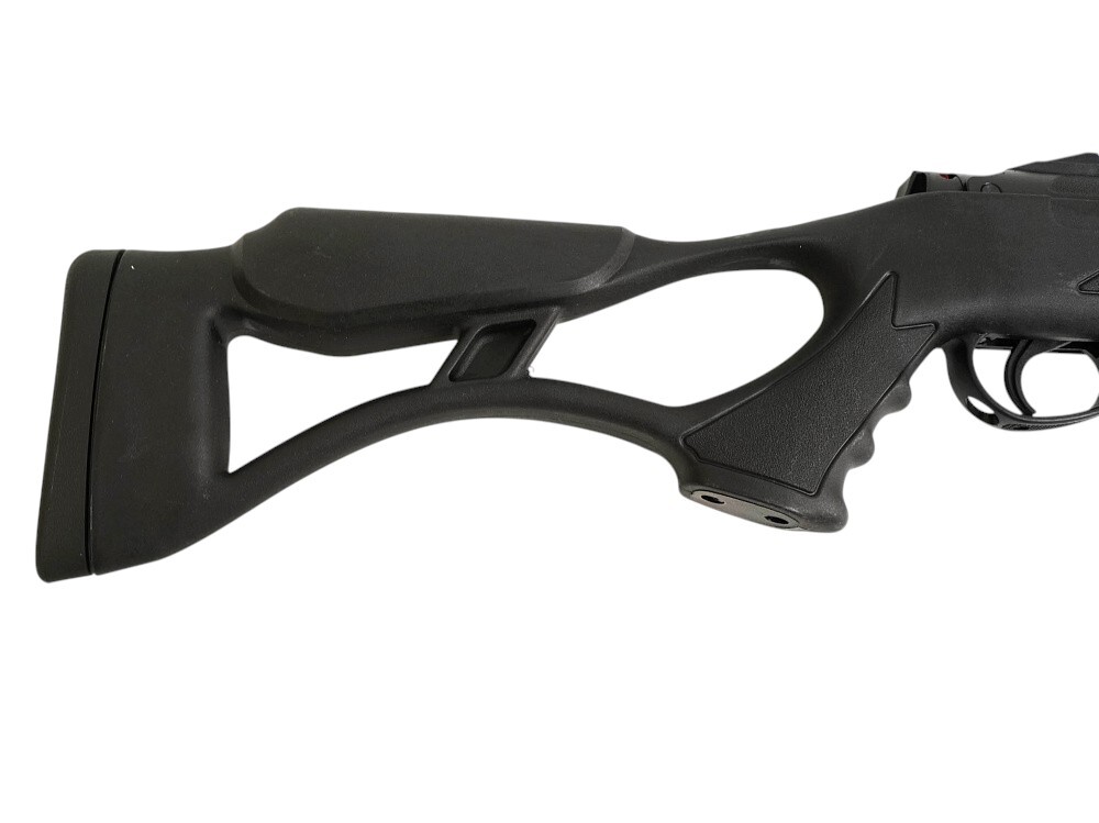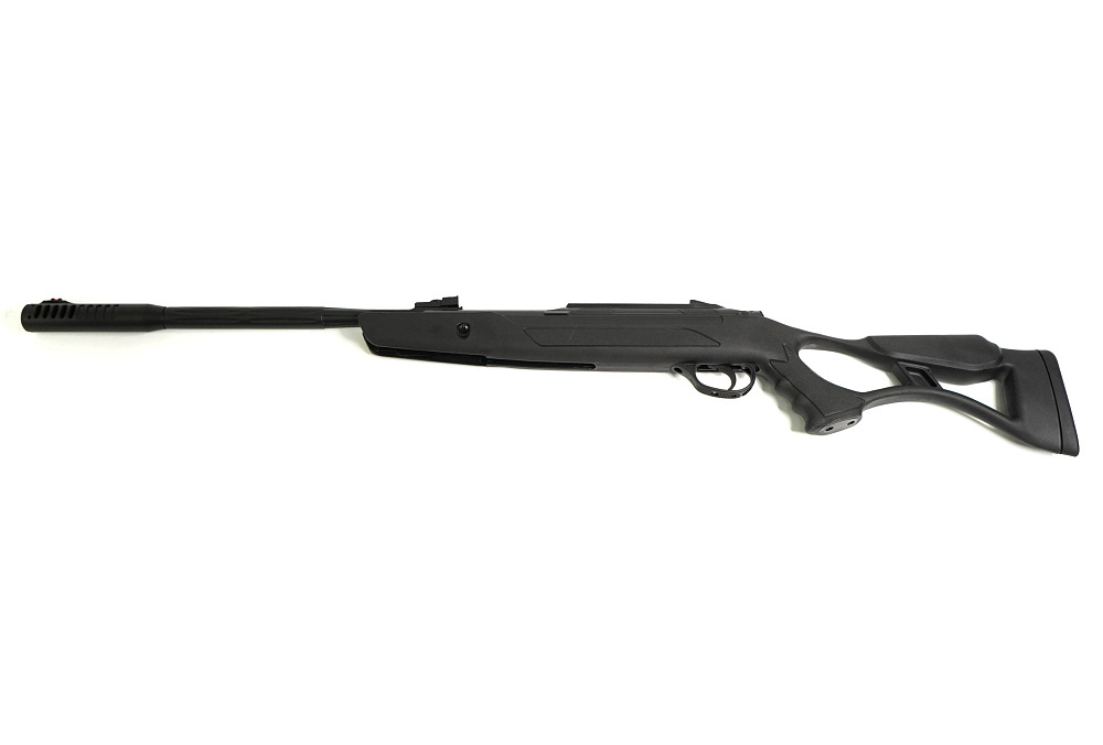 Модель относится к пружинно - поршневым переломкам, выстрел производится с помощью витой стальной пружины. Ствол из рифленой стали с синтетическим кожухом и звуковым замедлителем Ambidextrous, всепогодный, тактический стиль. Пазы на захвате и предплечье для лучшего контроля и ощущения. Резиновая подкладка для поглощения отдачи.