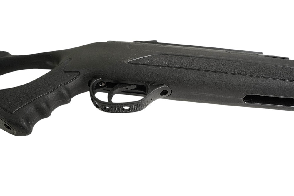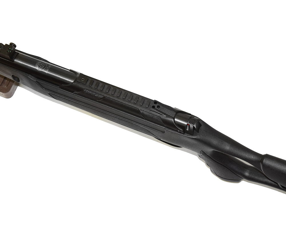 Модель относится к пружинно - поршневым переломкам, выстрел производится с помощью витой стальной пружины. Ствол из рифленой стали с синтетическим кожухом и звуковым замедлителем Ambidextrous, всепогодный, тактический стиль. Пазы на захвате и предплечье для лучшего контроля и ощущения. Резиновая подкладка для поглощения отдачи.