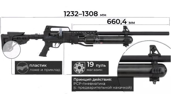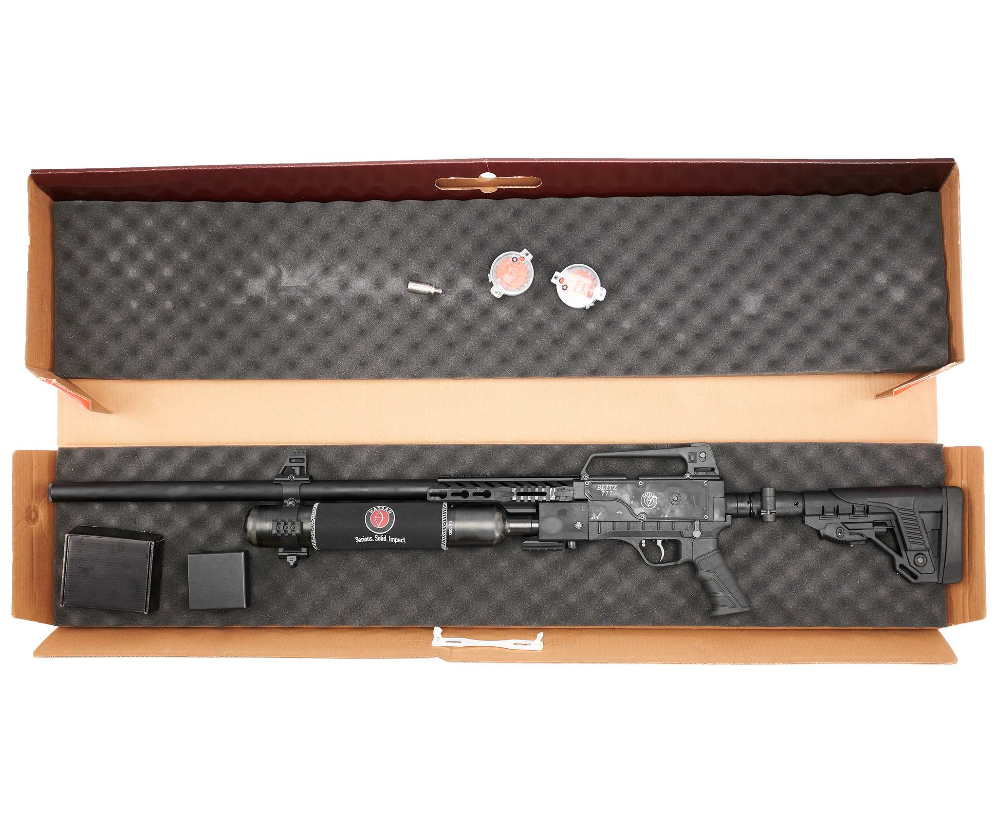 Модель оснащена передовой системой предварительной накачки (PCP), что обеспечивает стабильную и долговременную работу. Сила выстрела в 3 Дж позволяет эффективно использовать винтовку как для спортивной стрельбы, так и для охоты на мелкую дичь.