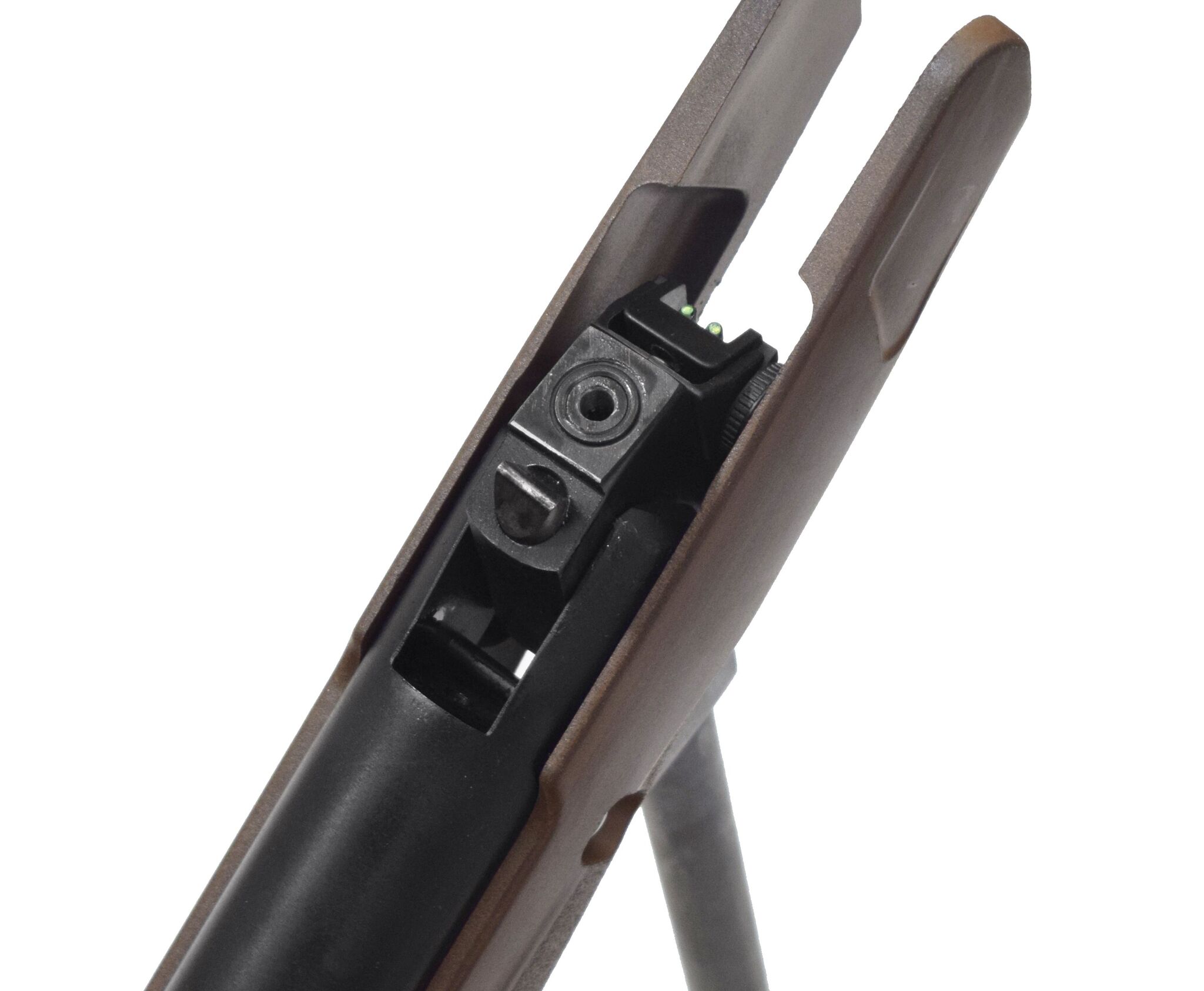Особенностью модели является ее оснащение мушкой Тругло с оптоволоконными нитями и подвижным целиком, это позволяет вести стрельбу при плохой освещенности.