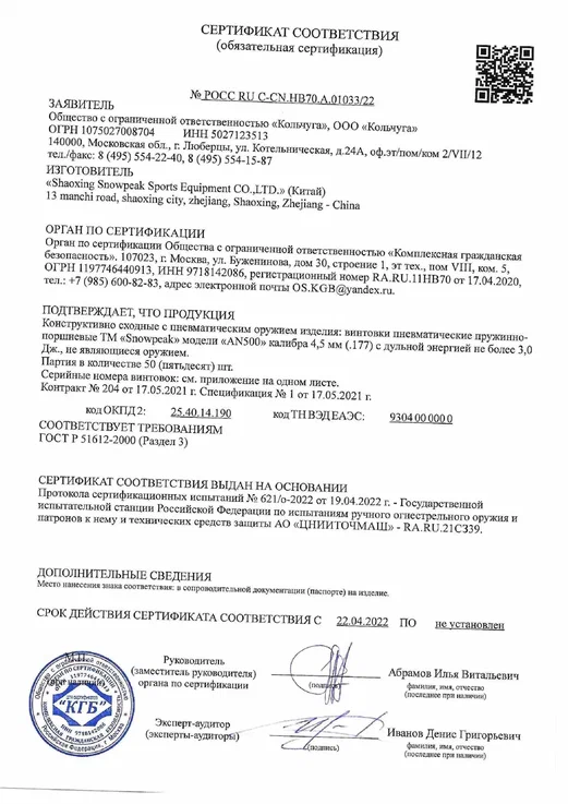 Винтовка пневматическая Snowpeak AN500 4.5mm