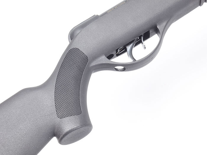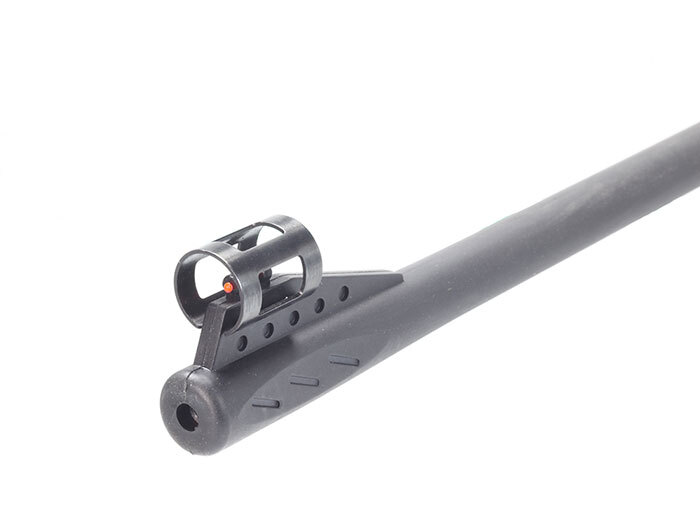 Однозарядная пневматическая винтовка Strike One B007 имеет неподвижный ствол и заряжается с помощью подствольного рычага. Приклад винтовки выполнен из пластика, с резиновым затыльником для компенсации отдачи, ложе с «щекой» Монте-Карло подходит для комфортной стрельбы левши и правши. Стальной 44-сантиметровый ствол с 12 полями нарезки (максимально возможное количество) обеспечит высокую кучность и точность стрельбы на дистанциях до 10 метров.